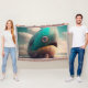 A quality printed throw has its advantages. This is a much finer weave throw than its loopier cousins, and though lighter, it is worth the investment for custom room accessorizing. The back is much prettier than the typical brown, and the fringe on the long sides very vivid, the selvage nicely done. Before photographing, I washed the throw in cold water, delicate, with a thicker woven throw the same size. On tumble dry low, this throw was dry in half the time as the other. This is a very practical quality if you use throws for furniture covers or to wrap up in frequently. The sleekness of the fabric makes it a great layer for accenting or protecting without the feeling of sitting on too much stuff. Perfect for napping or when you feel a light chill coming on. The color printing is beautiful and on this fabric, matched the design and color of my Photoshop image. This is an advantage for blending room fabrics and colors. The fringe on the short sides prints the colors from the design image and therefore varies from the side fringe. I streaked a white fractal line through the plaid pattern to give the illusion of weaving. This printed as crisp as an illusory thread, and put some white in the short side fringe, showing another advantage of print vs loomed- for artistic purposes, line lines, detail, and color integrity can be planned and preserved. My loomed throws have color limitations and more of a needlepoint texture. Print throws reproduce an exact image. The throw felt a little stiff straight out of the package, but this went away in the first delicate wash. Of course I searched the wash water for ink or bleeding and there was none.