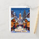 A Christmas postcard keepsake souvenir with a cartoon depiction of the Strasbourg, France Christmas market.
