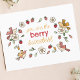Express your gratitude in the sweetest way with this whimsical, hand-illustrated thank-you postcard. Featuring endearing birds and vibrant spring strawberries, the front showcases the playful phrase, 'You are the berry sweetest,' adding a touch of humour and heart. Perfect for friends, family, teachers, or anyone who deserves a quirky and heartfelt thank-you or hello, this adorable thinking of you postcard is as unique and thoughtful as your sentiment. Its hand-drawn details make it ideal for sharing smiles and spreading joy on any occasion.