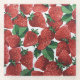 Textured vintage fabric with decorative strawberries and cream pattern.
