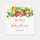 This beautiful and elegant napkin features watercolor strawberries, daisies and foliage. The text combines handwritten script and serif fonts for a stylish and modern look. This is perfect for a spring or summer rustic baby shower.