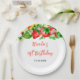 This beautiful and elegant plate features watercolor strawberries, daisies and foliage. The text combines handwritten script and serif fonts for a stylish and modern look. This is perfect for a spring or summer rustic birthday.