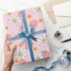 This pink wrapping paper with strawberry and daisy accents is a perfect touch for a special gift for a friend or family member.