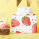 Red and white strawberries and dots in a seamless pattern, baby shower theme.