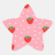 Strawberries and Polka Dots Pink star stickers. Customisable stickers have cute red strawberries with white polka dots on a pink background.