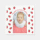 A cute hand drawn strawberry pattern with a custom photo template make these party napkins the perfect practical and decorative addition to your child's berry first birthday celebration!