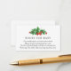 A book request insert card for baby shower. Featuring a bouquet of strawberries and greenery with poem: "ONE SMALL REQUEST, WE HOPE NOT TOO HARD