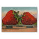 Antique Funny Giant Strawberry Train - This strawberry illustration is based on a postcard from 1911 that shows two giant strawberries -- being shipped cross-country on a train. The strawberries are bigger than a house! These are truly giant strawberries, meant for giant people living somewhere in the far reaches of the strawberry king's empire! The strawberries are each about the size of a house, bright red berries, and are sitting on a train flatbed, rolling down the railroad tracks.