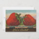 Antique Funny Giant Strawberry Train - This strawberry illustration is based on a postcard from 1911 that shows two giant strawberries -- being shipped cross-country on a train. The strawberries are bigger than a house! These are truly giant strawberries, meant for giant people living somewhere in the far reaches of the strawberry king's empire! The strawberries are each about the size of a house, bright red berries, and are sitting on a train flatbed, rolling down the railroad tracks.