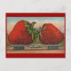 Antique Funny Giant Strawberry Train - This strawberry illustration is based on a postcard from 1911 that shows two giant strawberries -- being shipped cross-country on a train. The strawberries are bigger than a house! These are truly giant strawberries, meant for giant people living somewhere in the far reaches of the strawberry king's empire! The strawberries are each about the size of a house, bright red berries, and are sitting on a train flatbed, rolling down the railroad tracks.