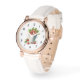 A watch with a summery graphic of a bunch of strawberries overflowing in a bucket.