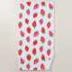 Strawberries in Pink, Red and Green Watercolor Beach Towel