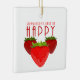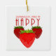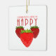 Keywords: strawberries make me happy, ceramic strawberry ornament, cute fruit holiday gift, happy quote decoration, fruity aesthetic ornament, strawberry lover gift.