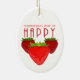 Keywords: strawberries make me happy, ceramic strawberry ornament, cute fruit holiday gift, happy quote decoration, fruity aesthetic ornament, strawberry lover gift.