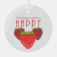Keywords: strawberries make me happy, strawberry glass ornament, cute fruit holiday gift, happy quote decoration, fruity aesthetic ornament, strawberry lover gift.
