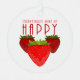 Keywords: strawberries make me happy, strawberry metal ornament, cute fruit holiday gift, happy quote decoration, fruity aesthetic ornament, strawberry lover gift.