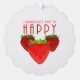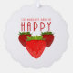 Keywords: strawberries make me happy, strawberry ornament card, cute fruit holiday gift, happy quote decoration, fruity aesthetic design, strawberry lover gift.