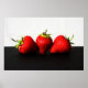 Strawberries On White Over Black - Contrasting study of two sets of three strawberries photographed against alternating black and white backgrounds creating a vivid and slightly retro sixties look.