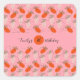Square Sticker with Hand Drawn Strawberries Art Pattern Pink and White Strawberry Design