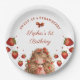 Strawberries Sweet Watercolor Girl 1st Birthday Paper Plate
