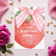 A large red stawberry with a pink bow for a Berry First Birthday party. Personalise and add your party details.