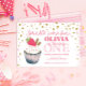 Strawberry 1st Birthday Invitation – Sweet Pink “B