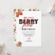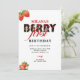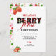 Cute girl's 1st birthday party invitation card featuring a watercolor illustration of strawberries. The text says "Join us to celebrate XX's berry first birthday party"