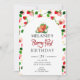 Cute girl's 1st birthday party invitation card featuring a watercolor illustration of strawberries. The text says "Join us to celebrate XX's berry first birthday party"