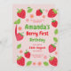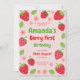 Capture the sweetness of a milestone with this charming berry first strawberry party design, featuring a delightful strawberry theme in vibrant red and green tones with space for a cherished photo. Perfect for a child’s 1st celebration, this customisable piece brings a fresh and whimsical vibe to the party. With its adorable fruit-inspired style, it’s ideal for a memorable gathering. Includes space for your event details and RSVP info. Personalise it to create a treasured keepsake for your baby and guests!
