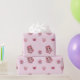 A pattern of a cute girl, flowers and hearts on a pink background.