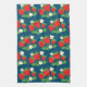 Strawberry and Flower Blue Pattern Tea Towel