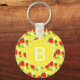 Strawberry and Flower Yellow Pattern Monogrammed Key Ring