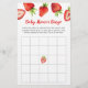 Have some fun at your baby shower with this bingo game card. Watercolor illustration of the red fruit. The bingo game asks the guests to guess what gifts the mummy-to-be will be receiving. Original illustration and design by Namibear Art Studio.©Namibear