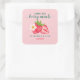 Strawberry Baby Shower Thank You Berry Much Custom Square Sticker. Thank you berry much for showering us with love baby shower favour sticker
