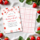 Celebrate your sweet little one with this Berry 1st Birthday Strawberry Invitation! Featuring playful red strawberries, a pink bow, and charming script, this design is perfect for a berry-themed celebration. Ideal for outdoor parties, garden gatherings, or summertime fun, it adds a fruity and feminine flair to your girl's first birthday. Customise with your party details and send a juicy welcome to friends and family for a day full of smiles and sweetness.