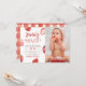 Come and join us to have some fun, our sweet little berry is turning one! Berry first birthday one-year-old party theme. The front of this card is divided into two sections, to the left, there is the invitation design, and to the right, there is a photo of the birthday girl. We have chosen a template photo of a toddler eating a big plate of strawberries to match the theme of the card. The invitation design features six watercolor strawberries around the edge, the birthday girl's name in big handwriting-style lettering, and "berry first birthday" in vintage-style serif capitals. There is a little faux gold heart between the two sections of text. The back of the invitations is a hand-painted chequered pattern. The retro type and red plaid are inspired by strawberry jam jars! Perfect for spring & summer celebrations, and outdoor & garden themes. Berry sweet first birthday invitations. Click "Personalise this template" to edit the text and upload your own photo. For more advanced edits use Zazzle's Design Tool. Please note the cards are printed as you see them on your screen when ordering, so be sure to double-check for typos! Browse my store for more girls' 1st birthday party invitations.
