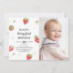 Strawberry Berry First Girl 1st Birthday Photo Invitation