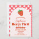 Strawberry Berry First Pink Red 1st Birthday Party Invitation