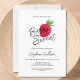 This girl's strawberry-themed baby shower invitation is decorated with a simple red watercolor strawberry and it says Berry Sweet in elegant script typography.