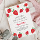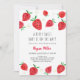 This adorable invitation features hand painted watercolor strawberries and flowers.