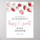 This sweet baby shower welcome sign features fresh strawberries and elegant script typography and can be personalised with your name and special date. Designed by Thisisnotme©