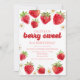 Berry Sweet Birthday! Watercolor strawberry birthday invite with pink plaid back.