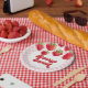Berry Sweet! Strawberry and pink plaid birthday party plates.