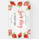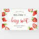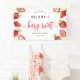 Cute strawberry theme girl's birthday party welcome banner featuring watercolor illustration of the red fruit. The text says "welcome to XX's berry sweet birthday party."