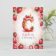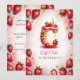 Celebrate a special birthday with this delightful strawberry letter "C" cake invitation! This charming watercolor design features a fun and festive cake shaped as the letter "C," decorated with fresh strawberries, pink icing, and a glowing birthday candle. The soft pink background with scattered strawberries adds a playful touch. Personalise with your child’s name, age, and party details for a one-of-a-kind strawberry-themed birthday celebration. Perfect for kids who love fruit-themed parties or summer birthdays!
