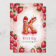 Celebrate a special birthday with this delightful strawberry letter "K" cake invitation! This charming watercolor design features a fun and festive cake shaped as the letter "K" decorated with fresh strawberries, pink icing, and a glowing birthday candle. The soft pink background with scattered strawberries adds a playful touch. Personalise with your child’s name, age, and party details for a one-of-a-kind strawberry-themed birthday celebration. Perfect for kids who love fruit-themed parties or summer birthdays!