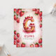 Make your child’s birthday extra sweet with this adorable strawberry-themed invitation! Featuring a delicious letter “G” cake decorated with juicy strawberries, pink icing, and a festive candle, this charming watercolor design is perfect for kids whose names start with "G." The background showcases a soft pink watercolor effect, framed by vibrant strawberries and delicate blossoms. Personalise it with your child's name, age, and party details for a unique and fun birthday celebration! Ideal for strawberry-themed, fruit-themed, or summer birthdays.