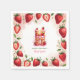 Add a sweet and festive touch to your celebration with this strawberry-themed birthday napkin! Featuring a whimsical watercolor illustration of the letter "H" as a delicious strawberry cake, this charming design is perfect for kids’ birthdays and summer parties. The cake is topped with fresh strawberries, pink frosting, and a glowing birthday candle. Surrounding the cake, an elegant square frame of hand-painted strawberries and delicate green leaves enhances the design. The phrase “Happy Birthday” and a customisable name make it a unique and personal party accessory. A perfect addition to a strawberry-themed celebration!