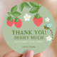 Say thank you berry much with these adorable strawberry birthday thank you stickers! Featuring hand drawn strawberries, a buzzing bee, and sweet floral accents on a green background, these personalised stickers are the perfect way to dress up party favour bags, envelopes, or thank you gifts.