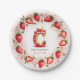 Celebrate in style with this adorable strawberry-themed round paper plate! The elegant border features a circular arrangement of hand-painted strawberries, with a mix of whole and sliced berries, delicate green leaves, and tiny white blossoms. At the centre, a beautifully illustrated letter "C" cake takes the spotlight, decorated with pink frosting, juicy strawberries, and a glowing birthday candle. The soft watercolor background blends seamless shades of blush and rosy pink, creating a festive and charming atmosphere. Perfect for strawberry-themed birthdays, fruit lovers, and summer celebrations. Pair with matching invitations and party decor for a coordinated look!